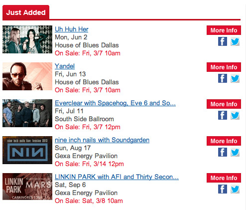 A listing for an August 17th show featuring Nine Inch Nails and Soundgarden at the Gexa Energy Pavilion in Dallas, TX briefly appeared on Livenation recently (see below for a cap.) No word on whether or not it will be a one-off show or a potential string of dates, as it has yet to be announced by either band.