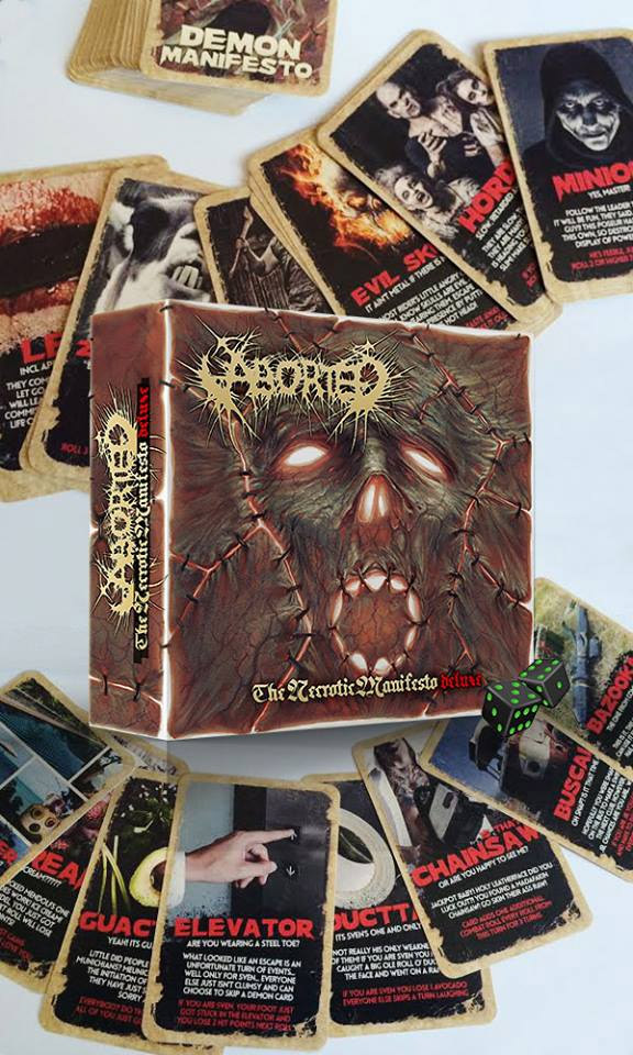 Aborted are going all out with the limited edition box set version of their new album “The Necrotic Manifesto“. Along with the album itself the outing will feature the exclusive b-side “Saprophytes” and covers of Converge‘s “Concubine” and Suffocation‘s “Funeral Inception“. On top of that, the box set also sports an adventure card game with 110 cards created by the band themselves.