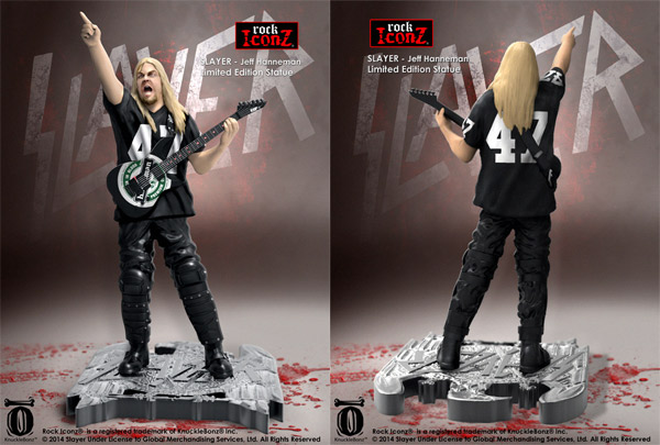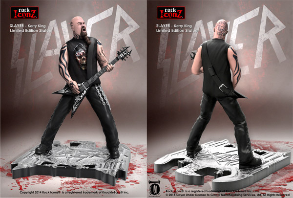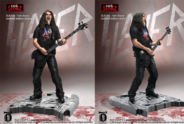 Knucklebonz are readying three Slayer statues for a release late this year. Guitarist Kerry King, frontman/bassist Tom Araya and late guitarist Jeff Hanneman have all been immortalized for the ‘Rock Iconz’ line and can be picked up for $125 a piece at Knucklebonz.com. You can take a look at each statue below: