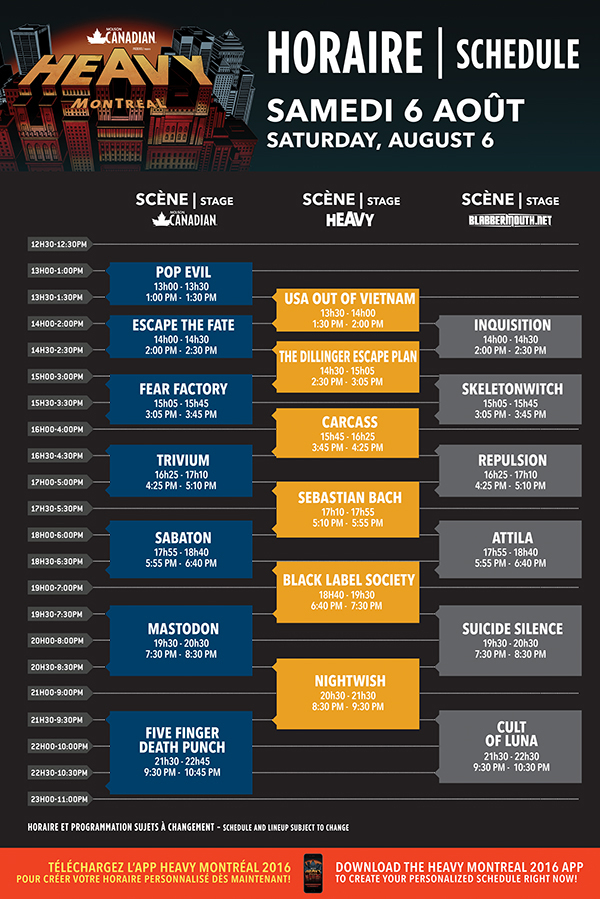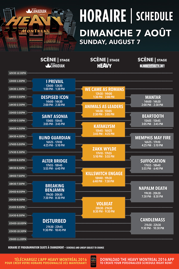 The daily schedule has been set for this year’s ‘Heavy Montreal‘ festival, which is to be held August 06th & 07th at Parc Jean-Drapeau in Montreal, QC. See below for how it will run: