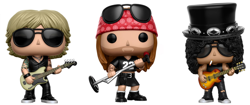 Three of Guns N’ Roses‘ classic era members, vocalist Axl Rose, guitarist Slash and bassist Duff McKagan, will be getting their own Funko Pop! Vinyl figures. The three figures will be released under the Pop! Rocks line and arrive in December. Other notable rock/metal musicians to have gotten their own figures in the Pop! Rocks line include Motörhead’s Lemmy Kilmister, BABYMETAL, Ozzy Osbourne, Kiss and members of My Chemical Romance.
