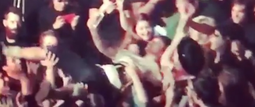 Every Time I Die have largely been at the forefront of deterring concert selfies over the years, with guitarist Jordan Buckley possessing a mean high kick and his brother, frontman Keith Buckley, showing off some stealthy moves. Jordan has perfected another move with the below masterful display of the crowdsurfing fan selfie: