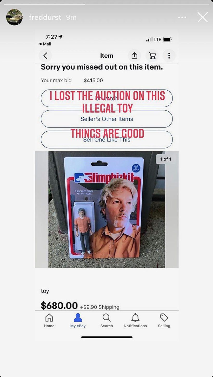 In other Durst news, he recently lost out on a eBay auction of a bootleg figure of himself with his latest attire choices. He shared the following post on his Instagram story about that: