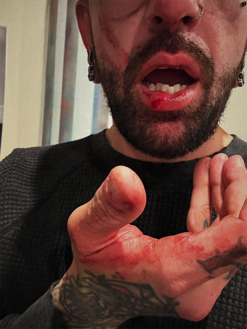 Vocalist Matthew Tybor has since commented via social media on the situation that unfolded during the set, while also initially sharing a picture of his busted lip and bloodied hand and face. While that post appears to have since been pulled, you can still read Tybor‘s statement on the matter below.