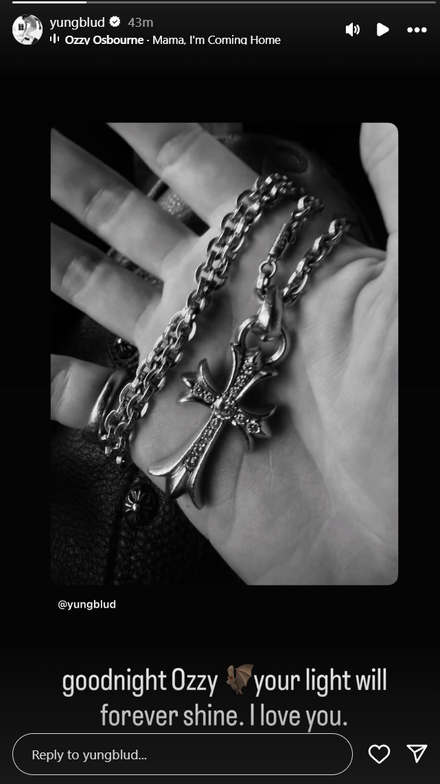 Alice In Chains‘ Mike Inez, who served a lengthy stint as Osbourne‘s solo bassist, offered: “Today we said goodbye to the greatest of all time.” Yungblud, who was said to have spoken at the memorial service, said on social media today, “goodnight Ozzy your life will forever shine. I love you.” Yungblud‘s social media tribute was particularly moving, as it showcased the crucifix chain he and Osbourne exchanged.