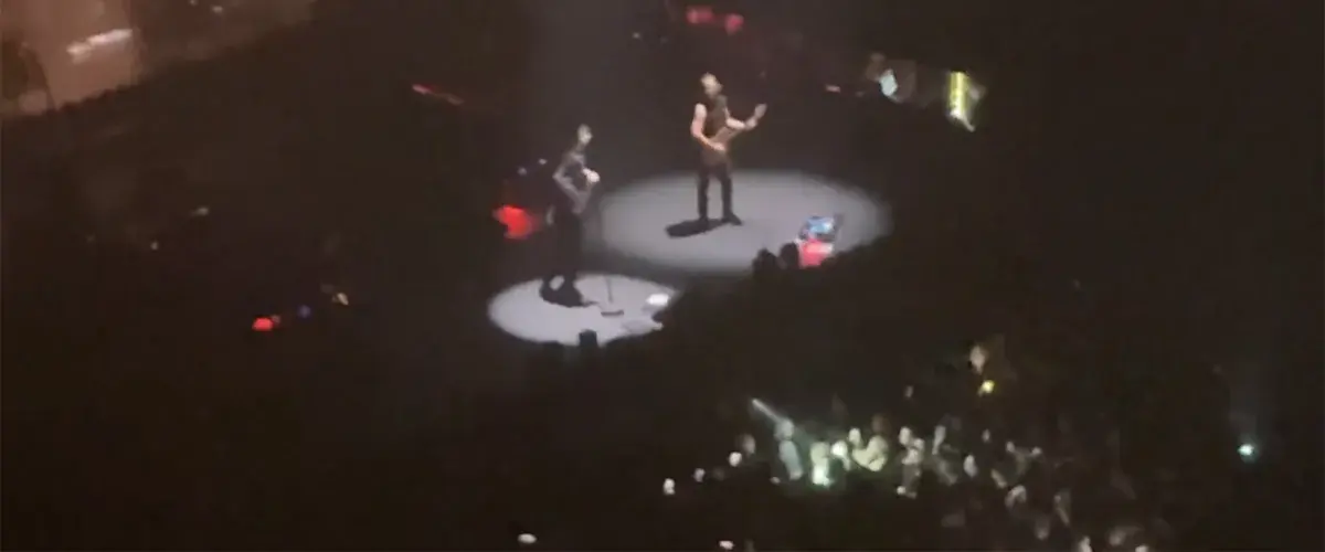 With the set remaining paused, security went and ejected the individuals in question from the audience, with the rest of the crowd engaging in loud boos directed towards those involved in the scrap as they were escorted out. The band resumed playing shortly afterwards. You can see fan-filmed footage of that below.